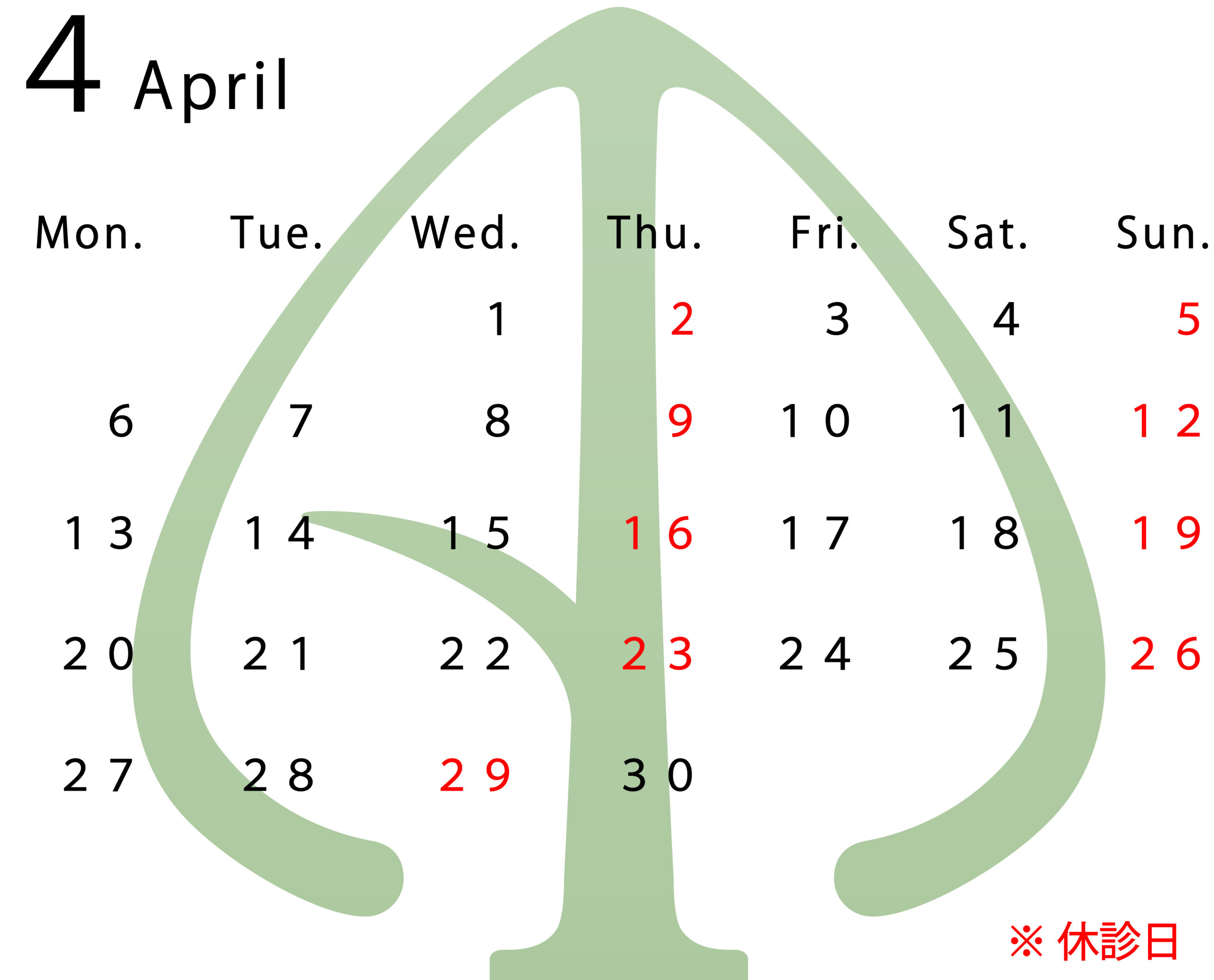 2026年4月診療日のお知らせ
